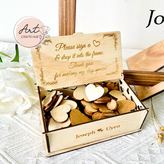 Wedding Guest Book Photo Frame, Heart-shaped Wooden Drop Box - A Unique Wedding Guest Book Alternative, Personalized for Your Special Day